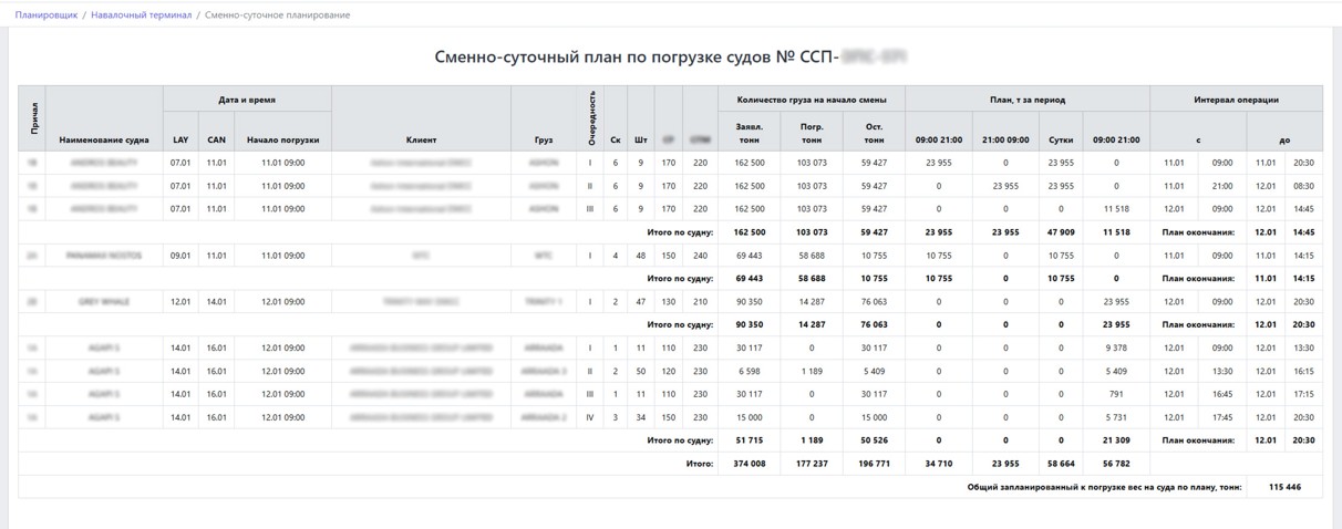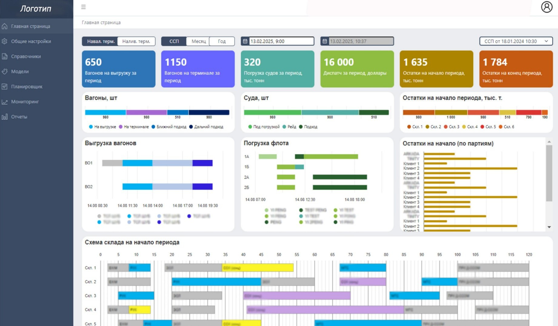Примеры интерфейса для расчёта ССП навалочных грузов